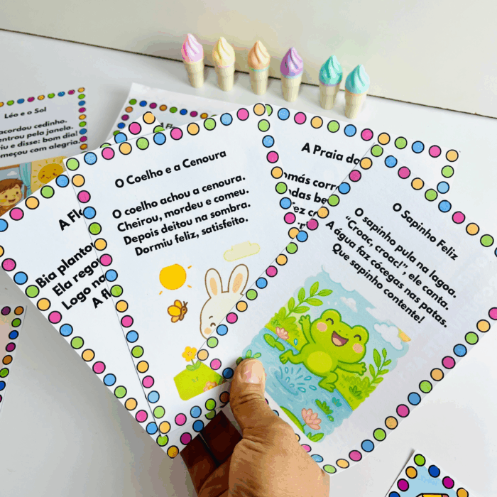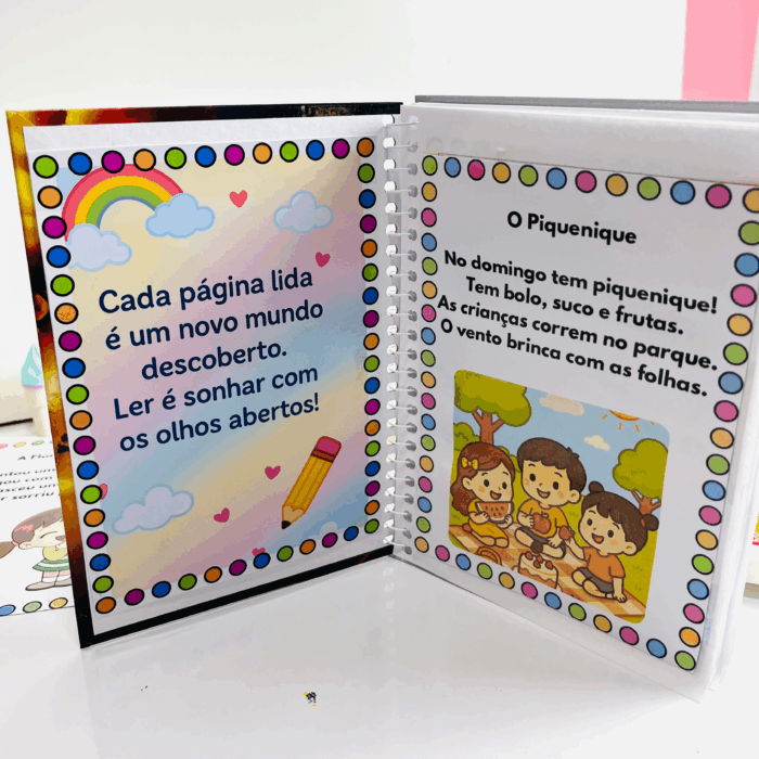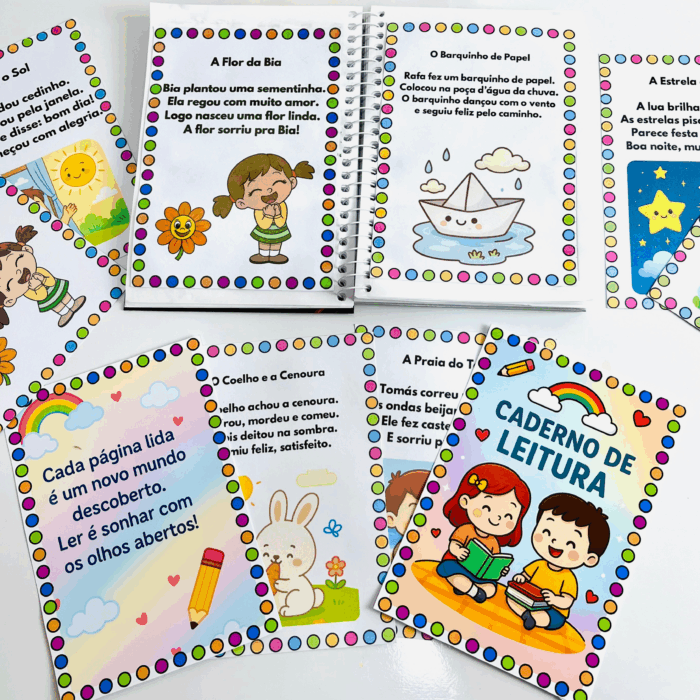 Cada página traz textos curtos, ilustrados e envolventes, perfeitos para desenvolver a fluência, a interpretação e o amor pelos livros desde cedo. 💕📖 São historinhas simples e encantadoras, com temas do cotidiano infantil e ilustrações que despertam a curiosidade e prendem a atenção das crianças.